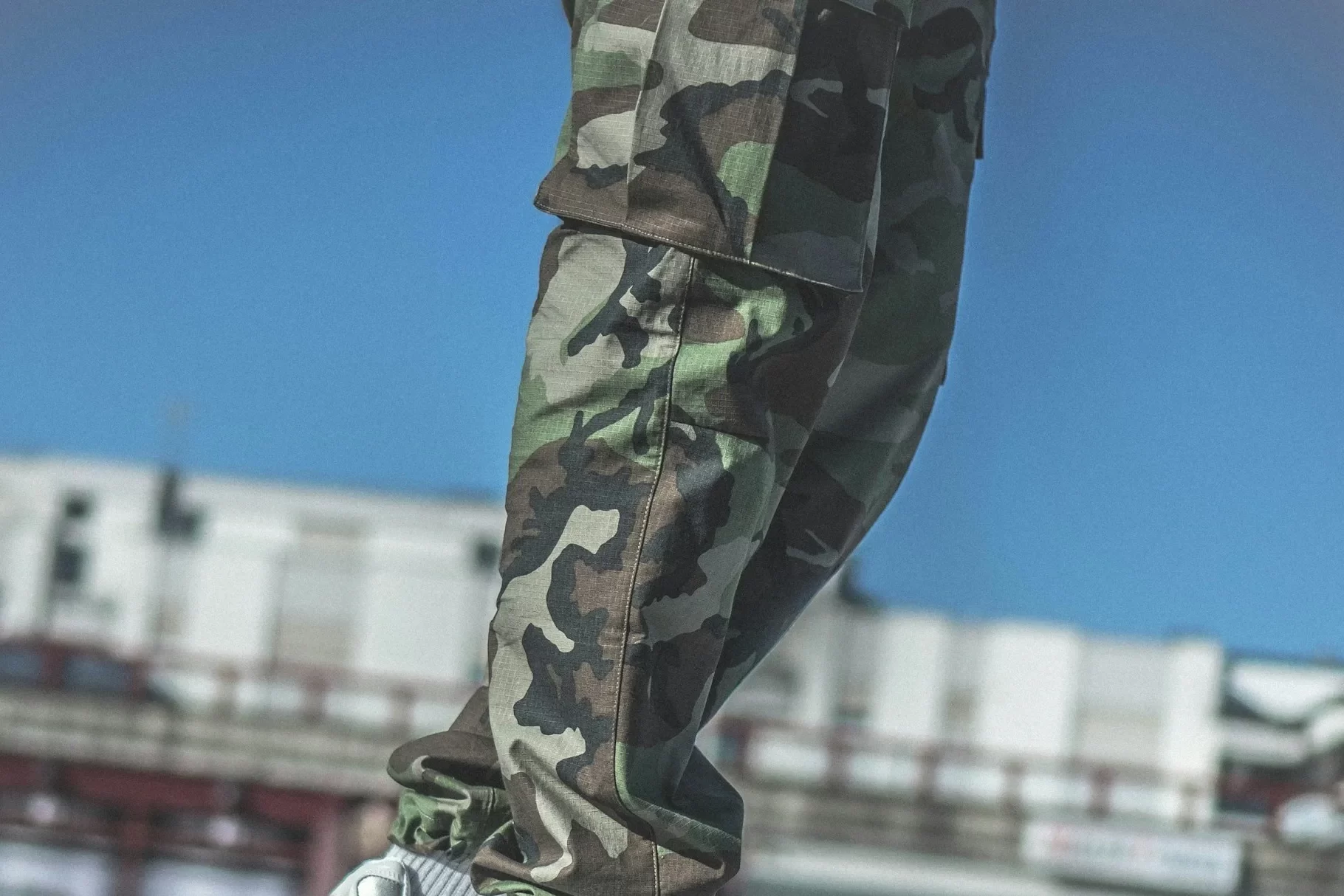 落ち着いた色味で、タウンユースにも合わせやすい迷彩柄です。
